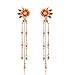 🌸【Aesthetic Cottagecore Earrings】:Shiny Swarovski crystals, very bright orange enamel color, 14k gold plated long chain with pink beads, a good choice for nature/flower lovers