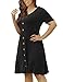 Features: Black plus size dress, short sleeve, plus size knee length dress, causal, round neck, A line button down dress; Buttons for decoration, non-functional;