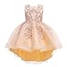 Style: 2022 Weileenice high-low holiday lace embroidery sequins tulle dress. Rose gold flower girl dress for wedding, gold hi-low pageant dress for girls, toddler girl formal party dress, little girls ball gowns champagne, kids princess dresses for wedding, gold embroidery tulle dress for girls, girls elegant masquerade ball prom dress, hi-lo dresses for girls, golden junior bridesmaid dresses, gold birthday dresses for girls, toddler girls party dress, girls daddy daughter dance dress gold.