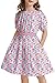 【Classic Timeless Style】The classic short sleeves A-line midi dress with Lovely floral print / Embroidered smocked waistline / Natural gather on the chest / Elastic round neckline / Pull-on style / Sleeve with elastic cuffs / Inseam pockets / Above knee length, looks like an elegant flower bud when she twirls in it.