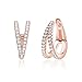 DAZZLING CONCH FOR NON PIERCED EARS - Sterling silver 925 faux fake conch huggie hoop earrings tapered double row sparkling simulated diamonds cartilage ear cuff for non pierced ears rose gold plated; Hinged for easy open and close