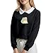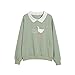 [Materia]l: 35% Cotton + 65% Polyester, Cute Thin Autumn Loose Fit Turn-Down Collar Sweatshirt