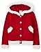 FEATURES — 100% combed cotton, 100% polyester faux fur trim, button front, attached hood with faux fur trim, long sleeves and ribbed sleeve cuffs and hem