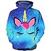 DESIGN : ribbed hem and cuffs , kangaroo pockets , unicorn pattern , hooded , no thumb holes
