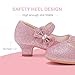 【BEAUTIFUL AND ELEGANT】These princess shoes for girls have a light yet sturdy low block heel that is easy to wear and is a great starting heel for your little girl, with rhinestone heels designed not to fall off easily