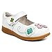 Mary Jane-style flat featuring genuine leather upper with petal cutouts and scalloped trim