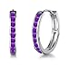 Purple Earrings for Women - These hoops for women and girls are 2mm thick and are secured by post with snap-down backs. The earrings are crafted of fine sterling silver.