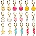Pack of 16 pairs small gold leverback earrings. Includes a variety of animals earrings, fruit earrings, unicorn earrings, butterfly earrings, bee earrings, mermaid earrings, beach earrings, daisy earrings, pineapple earrings, strawberry earrings and so on