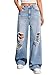✅Fashion Designed: Wide-leg and ripped style,fashion and casual denim baggy pants for your pretty girls