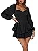 Features: Lantern long sleeves, low square neck, off shoulder, tie waist, solid color, elastic necline and cuffs, double layer ruffle hem, back zipper closure, shorts jumpsuit, romper shorts for women, above knee length, A line, slim fit, swing and elegant vintage romper.