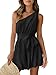 Details: One shoulder, sleeveless, belted, high waist, regular fit, solid color, shorts jumpsuits with pockets, casual summer trendy rompers.