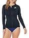 FRONT ZIPPER is easy on/off, crew-neck rashguard top featuring raglan long sleeves and floral/splice at both side