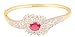 Touchstone Indian Bollywood fine filigree trendy designer jewelry bracelet beautifully embedded with cubic zirconia and oval shape faux ruby for women in gold and silver tones SPECIFICATIONS : Free Size (Openable)