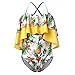 *Feature*: This adorable swimsuit for girls features a ruffle neck with stylish all-over fruit print pattern.