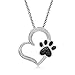 This heart paw pendant necklace in 925 sterling silver makes you unique, crafted with treated black and natural white diamonds in prong with an 18 inch cable chain