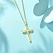 ▶ HIGH QUALITY – Brightly polished finish, our bestselling cross pendant necklace is paved with top grade cubic zirconia diamond round stones and 14K yellow gold plating. Look dangling from a classic 18-inch sterling silver cable chain.
