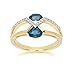 This ring is made with certified genuine gemstones and features two oval 6x4 mm London blue topaz gemstones accented by twenty-three colorless white topaz.