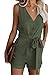 Feature:Sleeveless, Tie waist, Button down, V neck, Solid color, High waist, Short Pants Jumpsuits Romper with Belt.
