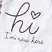 DESIGN:Cute newborn romper. Baby romper features classic o-neck, long sleeve, soft cotton floral print shirt one-piece baby grow romper bodysuit, letter " the princess has arrived" “New to the Crew" "Hello I'm New Here" at front, Convey the meaning of welcome.