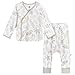 Allover light gray and light yellow leaves print top and pants with foldover cuff and mock drawstring.