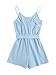 🍭 Boho summer short jumpsuits with self tie strappy, cute v neckline, adjustable straps, backless, button front, elastic waist and wide legs