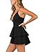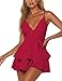 FEATURES: Deep v neck summer romper/Adjustable strap casual romper/Women's sleeveless short rompers/Waist tie knot romper jumpsuits/Double layer ruffle hem short rompers Playsuits/Pull on romper for women/Low zip back romper/High waist design rompers/Solid color casual romper jumpsuit/Wide leg rompers.