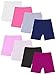 Each pack of shorts for girls includes a variety of vivid colors, with combinations of black, pink, grey heather, blue, along with some adorable novelty prints!