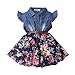 👗🌸Design of girls' fashion dress: Flare sleeves denim floral dress, blue denim top splicing with floral skirt, one piece A-line dress, with a separate belt, best choice for school uniform, spring, summer,fall
