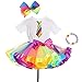 🌈Package includes: 1 pcs Tutu skirt + 1 pcs T-shirt + 1 pcs Rainbow hair bow clip + 1 pcs Elastic bracelet.