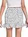 Self tie knot, ruffle trim, high low hem, flowy A-line split hem floral mid skirt for women.