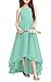 ❤Feature:Kids semi formal dresses, kids big girl sleeveless pleated chiffon,girls high low dress, girls asymmetrical dress, bridesmaid dress wedding, long sky blue spaghetti strap girls dress, backless dress, crossed straps,chest pleated,high waisted design, cute bow tie back.