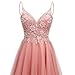 Feature:Tulle Homecoming Dresses 2023,Short Prom Dresses for Teens, Glitter Tulle,Sparkle,Lace Appliques,Plus Size,Tutu,Layered/Tiered, Spaghetti Straps,V Neck,Beaded,A Line,Sleeveless,Corset Back,lined in sequins,Above Knee Length,Bulit in Bra