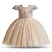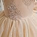 Style: Holiday golden flower girl dresses for wedding. V-neck, spaghetti strap tulle bodice. This special occasion dress has a classic feel with elegant & modern touches. Made with soft poly-cotton blend lace and tulle with breathable cotton lining. Fits at tea length or to the floor depending on the height of your child. Skirt consists of layers and layers of soft tulle. Our tulle and lace dress will have your flower girls feeling like they are in a real fairy tale. Perfect year round.