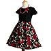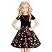 【Floral Vintage Dress】The black and red dress is made of 95% Cotton and 5% Spandex, the party dress is breathable, soft and comfortable. Fancy swing dress for your sweet girl.