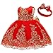 Baby Girls Lace Dresses - Pack with headwear, v-neck, bowknot tie on the back, hidden zipper,embroidery pattern,elegant design, a best gift for your princess baby girl.