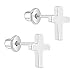 DETAILS: A perfect pair of religious jewelry that she will quickly love! Ideal for toddlers and young girls, these rhodium-plated plain cross safety screw-back earrings are great for her christening, baptism, first communion, or daily wear. These little cross earrings are the best accessories to complement your young girl's outfit and showcase her faith. Finished in rhodium plating and with safety screw-on backs, they will bring comfort and security to your little girl's ears. Gift box included.