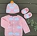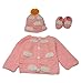 Keep your little one stylish and cozy in this adorable Classic Crochet Knit Sweater. Set includes booties & hat. Made of soft wool, the classic cardigan is great for layering on cooler days. The matching hat booties with little ears completes this precious look.