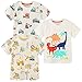 【Design】Baby cartoon patterns T-shirt, round neck short sleeve design, white T-shirts are printed with different color patterns, including car and dinosaur prints