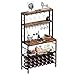 🍷【High Quality & Sturdy】This wine rack cabinet is constructed with a sturdy metal frame,4 adjustable feet ensure the standing kitchen rack stays stable on carpets or uneven floors. Crafted of particleboard and strong metal frame, which ensures the stability of the microwave stand and kitchen' rack use for many years. The weight capacity for each tier is about 120lbs.