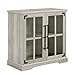 QUALITY FURNITURE: Made of engineered wood with an antiqued gray finish. Includes 4 doors (2 doors with glass panels) and 3 adjustable shelves