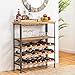 【Practical & Multi-functional】Retro wood finish blends well with black frame, it creates an industrial style and can harmonize with all home decor. This floor wine rack can not only be used as wine display shelves in the entryway or living room but also as a perfect wine storage shelf for cellar or other bar areas.