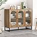 PREMIUM MATERIAL: Constructed from high-quality engineered wood, tempered glass and antiqued barn door handle, the modern sideboard storage cabinet with glass doors comes with solid structure and excellent workmanship to meet your pursuit of quality.