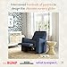 SPILL-PROOF FABRIC & SUPERIOR CONSTRUCTION: Stain resistant and liquid repellent Live-Smart️ materials. Built with a birchwood and poplar plywood frame and offers extra padded cushions and a warranty on all moving parts, ensuring that the Glider stands the test of time and can grow with your family.