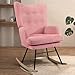 【Soft Material】: Covered with high-quality teddy velvet fabric, the material of this rocker glider armchair has the characters of lightness, warmth, elasticity, wear-resistant and genle hand feel while present you with the modern candy color and lovely appearance. At the same time, the seat and back cushions has the built-in highly elastic sponge, which is more comfortable and will not deform for a long time.