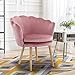【ELEGANT PETAL DESIGN】 This modern vanity chair is designed in a modern style with a shell edge on the back,graceful curve likes a shell,also like a petal which makes people feel like being wrapped in a flower, adds a touch of elegance and sophistication to this accent chair,coupled with wooden legs,which will make a deep impression on any visiting guest.