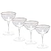 Add a special touch to your celebration with this set of 4 gold rimmed champagne coupe glasses. The champagne coupe is widely considered to be the most romantic of drinking vessels. So you and your friends are celebrating the special event of a life time. Make it extra special by adding these 4 vintage gold rimmed champagne coupe glasses to the mix! Whether you're sharing a bottle of champagne, wine or cocktails, these classy glasses are sure to impress your guests.