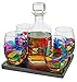 COLOR MAY VARY AS THESE ARE HAND PAINTED - BEAUTIFUL MASTERPIECE: Rennesance Romantic Stain-glassed Windows Whiskey & Wine Decanter and Glasses - These hand painted glasses were individually made by artisan glassblowers and uniquely crafted. Each individual set comes with A decanter wood base holder and 4 hand-painted glasses designed for you or a loved one.
