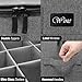 DURABLE PADDED DESIGN — Minimal assembly — Top loading design — Zipper closure — Conveniently stackable — Sturdy frame with fully-padded interior — Made of 100% polyester (outside) + non woven fabric (inside) + PP board support (inside) — Clean with damp or dry cloth — Holds up to 12 glasses — Measures approximately 15.75” L x 12” W x 10” H