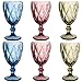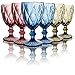 [Impressive Gift]-Come with a set of 6 different colored glasses,aqua,blue,red,green,amber,light purple,each glass have a stunning exquisite embossed pattern that will make it to be a big hit for wedding favor or party event to impress your friends and it will not feel out of date in a few more years,best gift for wine lover,housewarming, birthday,wedding favor or Christmas.