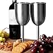 STAINLESS STEEL STEMMED WINE GLASSES: Set of 2 large elegant stainless steel wine glasses with tall slim stem. Made of premium food grade 18/8 stainless steel metal; these double walled insulated tumblers are unbreakable, light, compact and have an anti-slip bottom. Perfect for home, use as business gifts for your office use or take them outdoors, travel, camping, boating, etc.